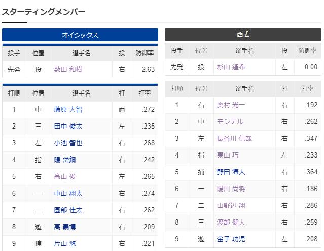 【試合実況】西武2軍スタメン 先発:杉山(2024.6.1)