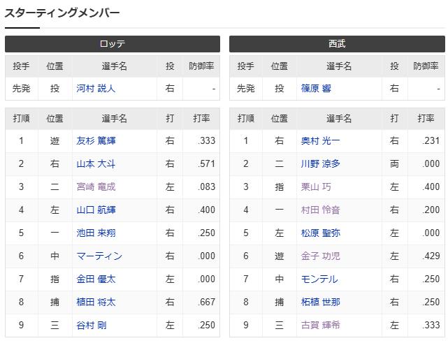 【試合実況】西武2軍スタメン 先発:篠原(2025.3.21)