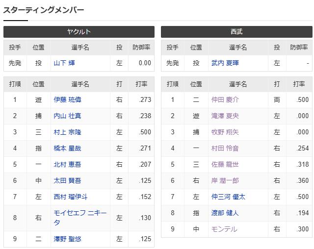 【試合実況】西武2軍スタメン 先発:武内(2025.4.9)