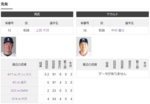 【試合実況】西武2軍スタメン 先発:上田(2025.4.29)