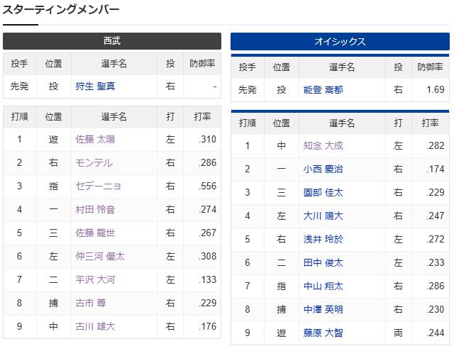 【試合実況】西武2軍スタメン 先発:狩生(2025.5.3)