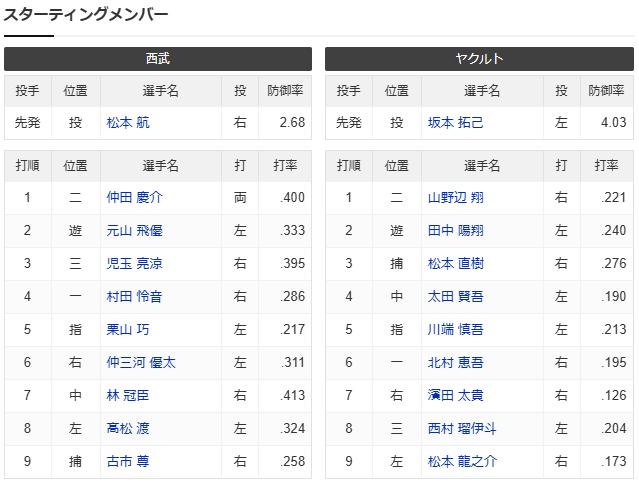 【試合実況】西武2軍スタメン 先発:松本航(2025.6.12)